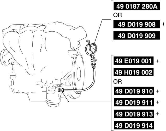 - 49 D019 908 (gauge), 49 D019 909 (hose), 49 D019 910 (adapter), 49 D019 911 (adapter), 49 D019 913 (adapter), and 49 D019 914 (adapter)