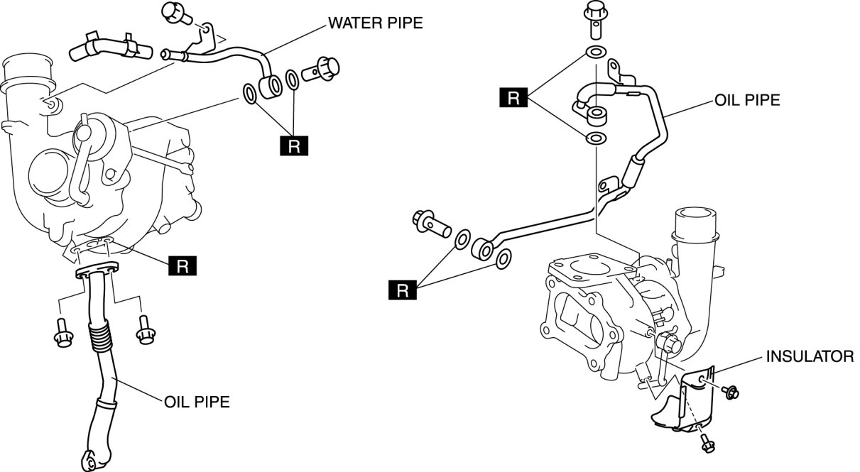 15. Remove the oil pipes, water pipe, and insulator.