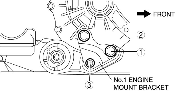 2. Temporarily tighten the No.1 engine mount bracket in the order shown in the figure.