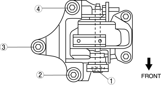 7. Tighten the No.4 engine mount bracket in the order shown in the figure.