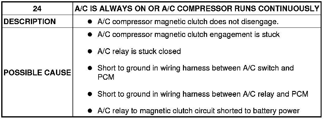 No. 24 A/C Is Always ON Or A/C Compressor Runs Continuously