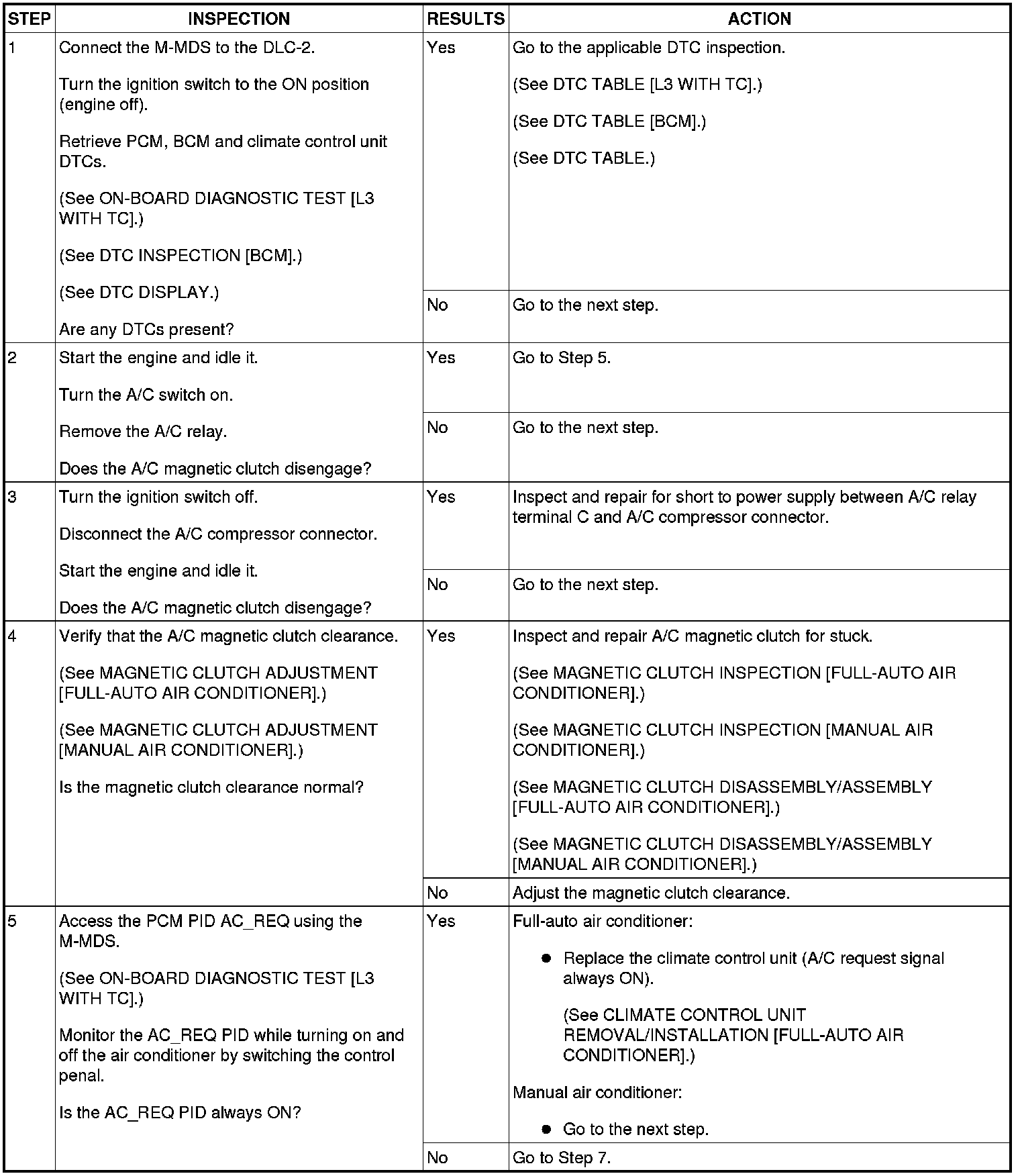 NO.24 A/C IS ALWAYS ON OR A/C COMPRESSOR RUNS CONTINUOUSLY [L3 WITH TC]
