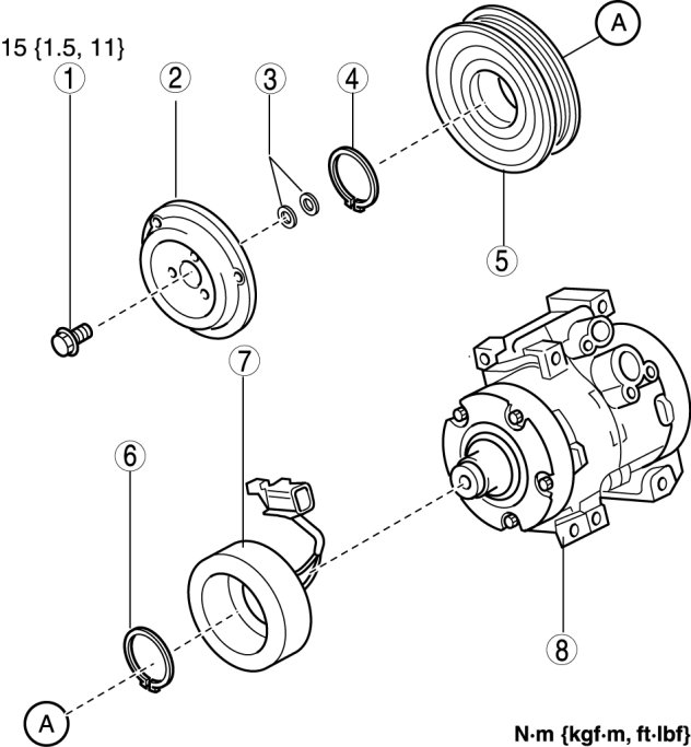 MAGNETIC CLUTCH DISASSEMBLY/ASSEMBLY [MANUAL AIR CONDITIONER]