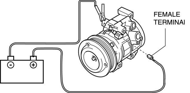 a. Apply battery positive voltage to the magnetic clutch terminal and connect the A/C compressor body to the ground.