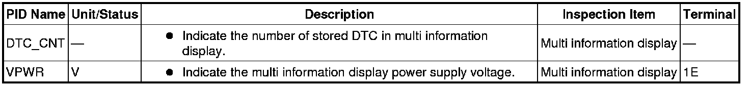 PID/DATA MONITOR TABLE [MULTI INFORMATION DISPLAY]