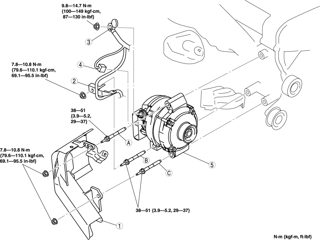 - When the battery cables are connected, touching the vehicle body with generator terminal B will generate sparks. This can cause personal injury, fire, and damage to the electrical components. Always disconnect the negative battery cable before performing the following operation.