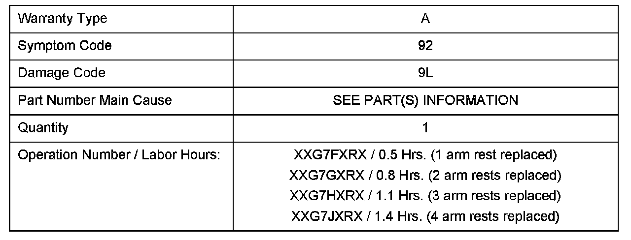 On some vehicles, the surface of the door trim arm rest may peel off, resulting in poor appearance. This may be caused by poor adhesion. The surface may peel when the arm rest is grabbed by hand.