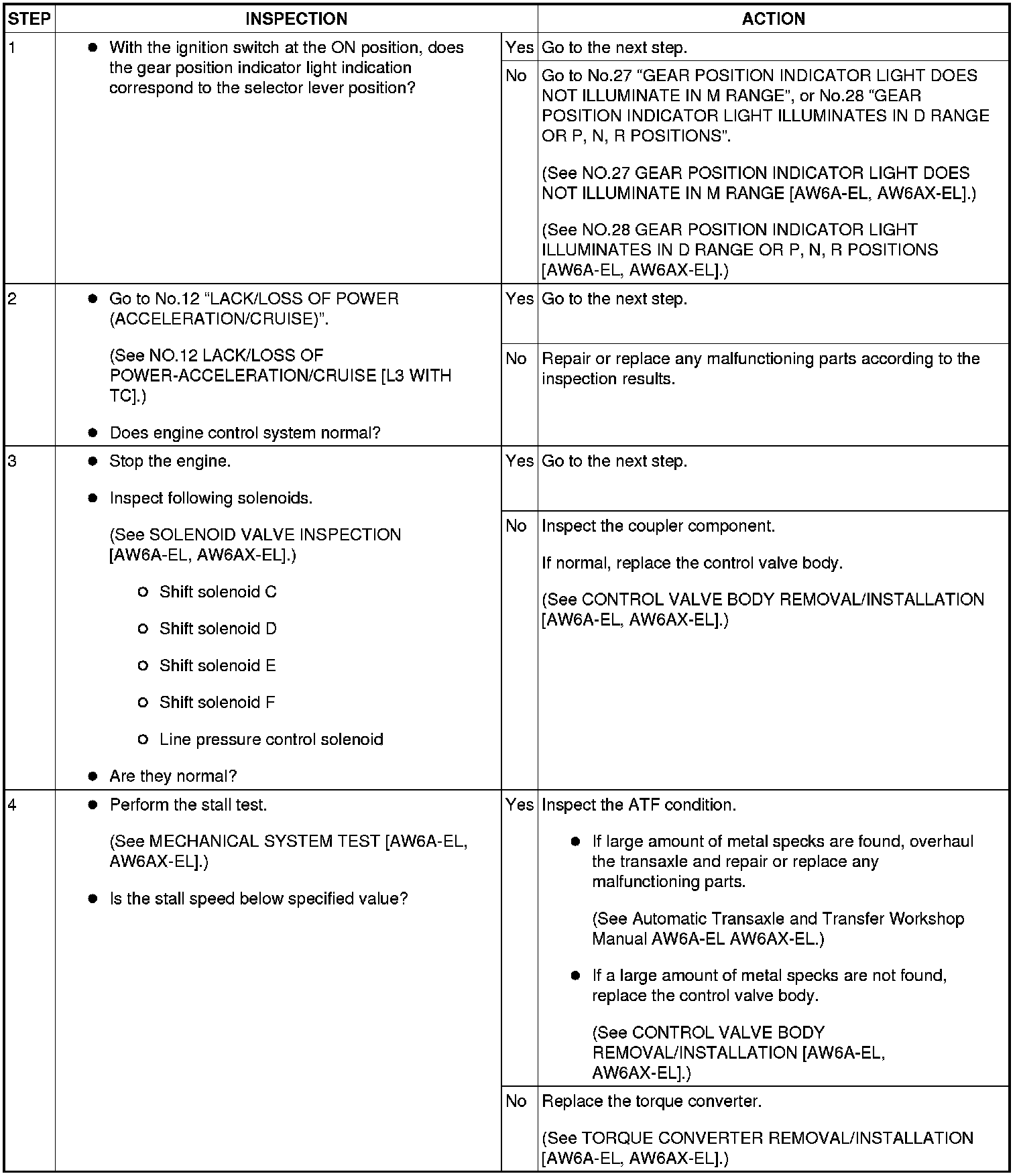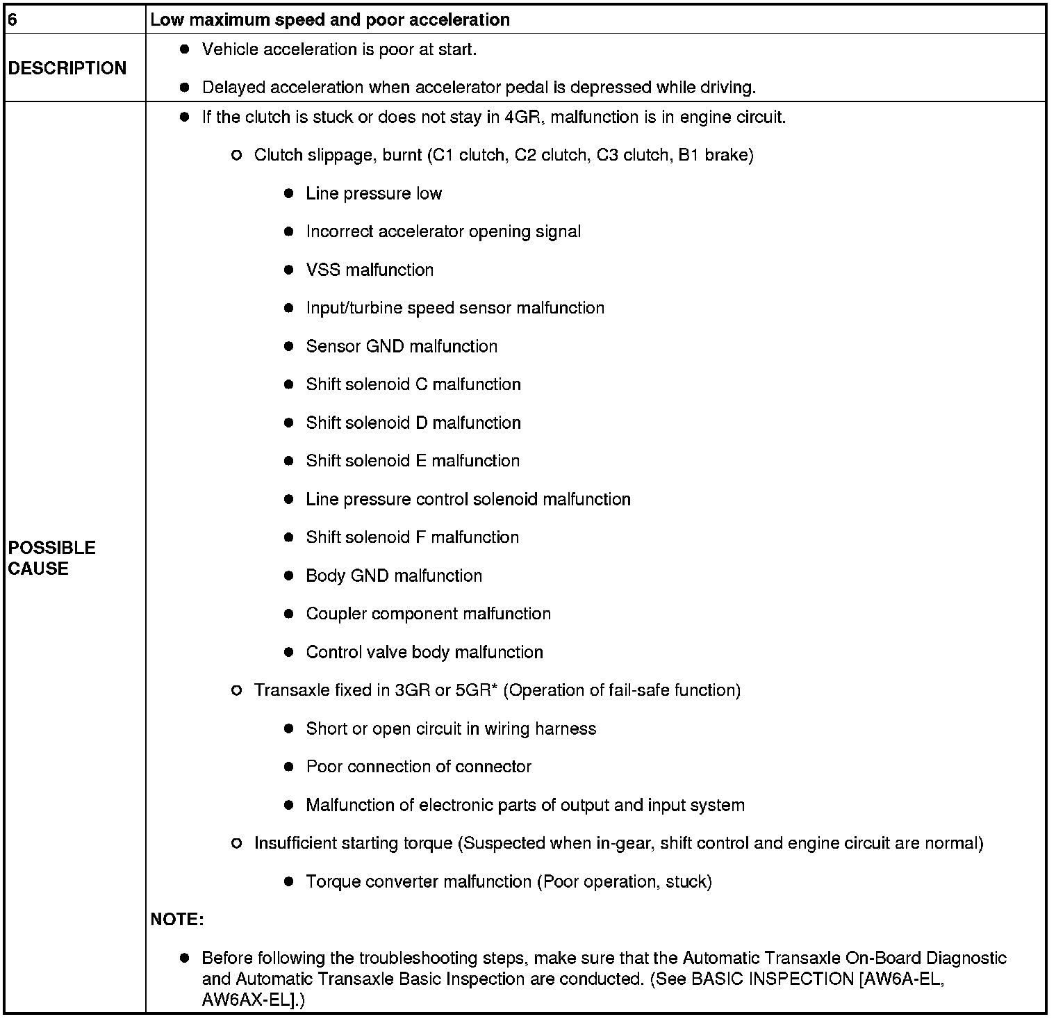 NO.6 LOW MAXIMUM SPEED AND POOR ACCELERATION [AW6A-EL, AW6AX-EL]