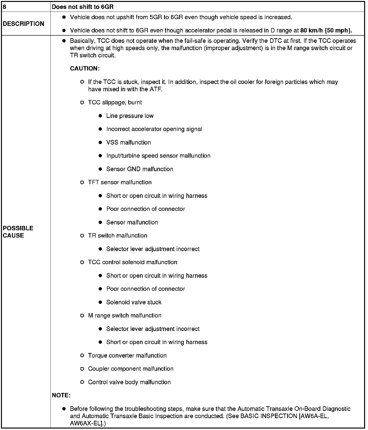 NO.8 DOES NOT SHIFT TO 6GR [AW6A-EL, AW6AX-EL]