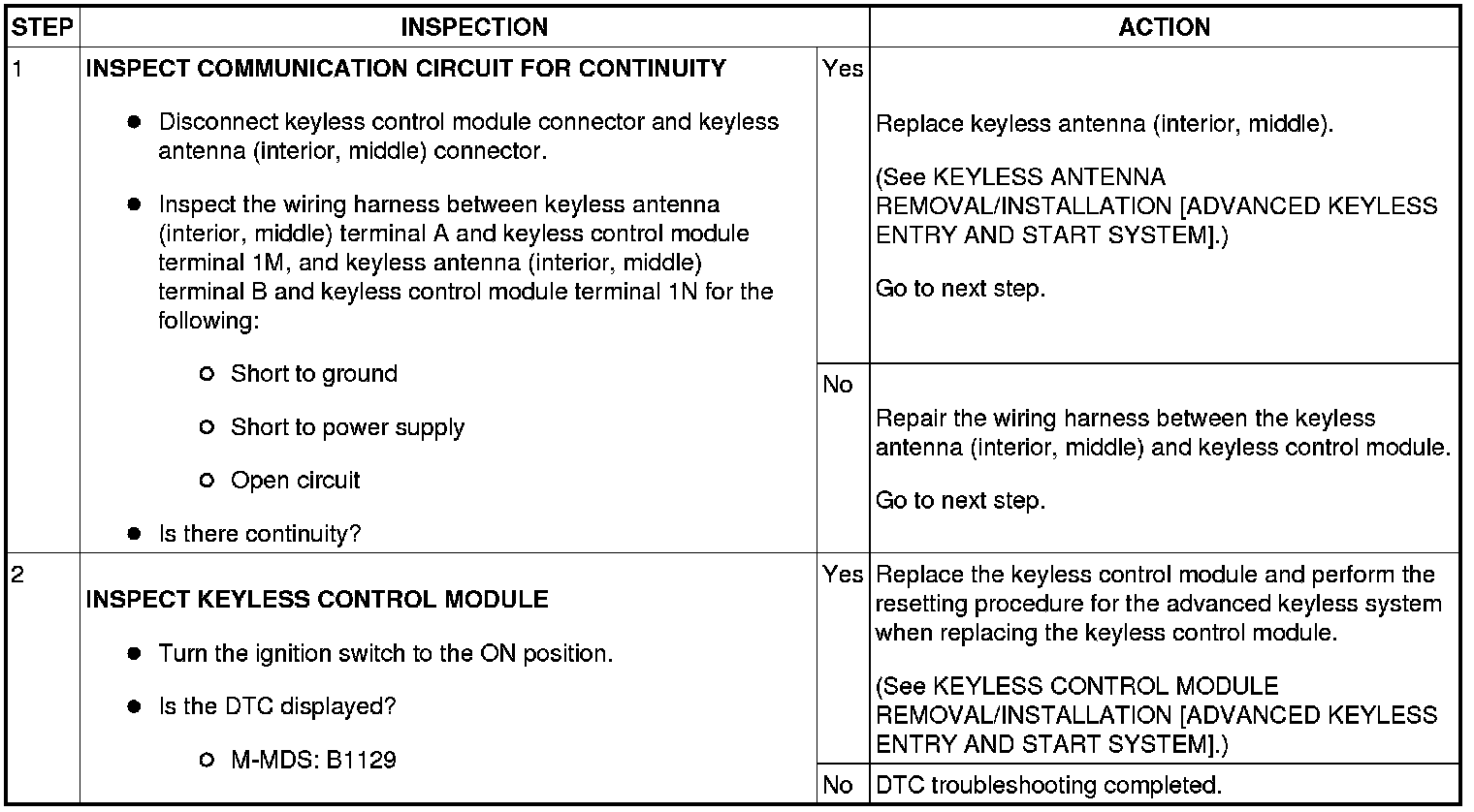 DTC B1129 [ADVANCED KEYLESS ENTRY AND START SYSTEM]