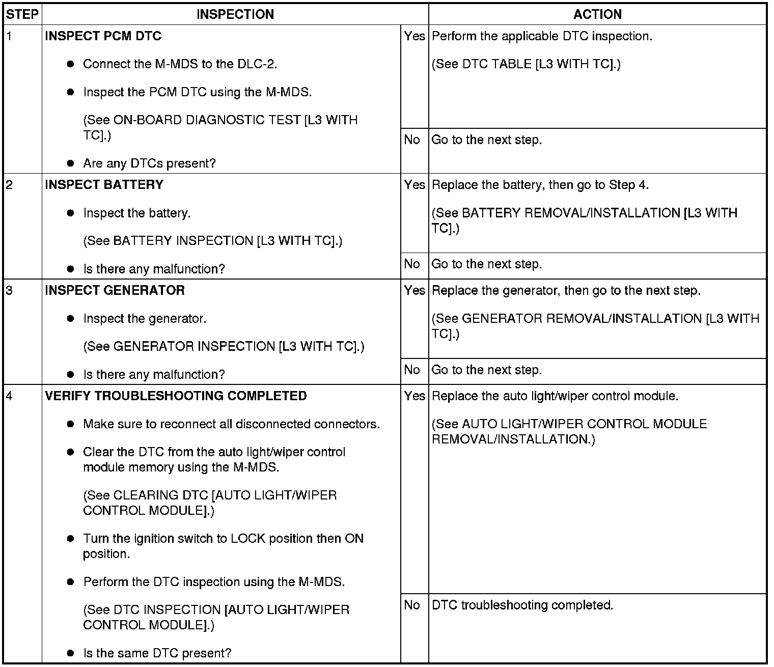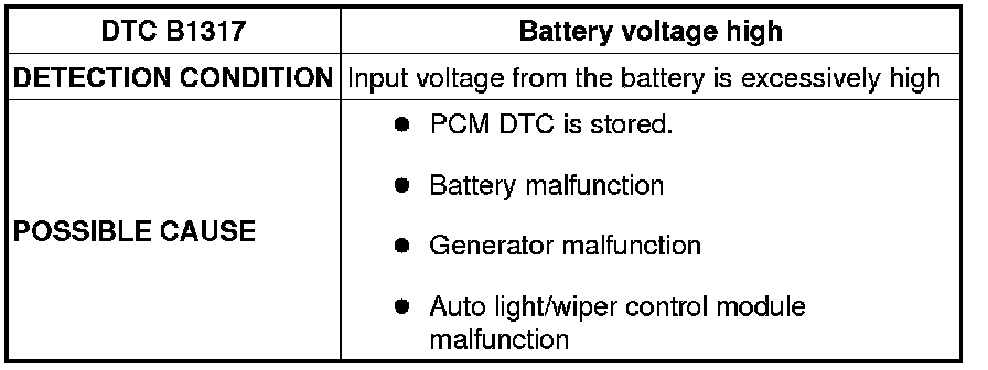 DTC B1317 [AUTO LIGHT/WIPER CONTROL MODULE]