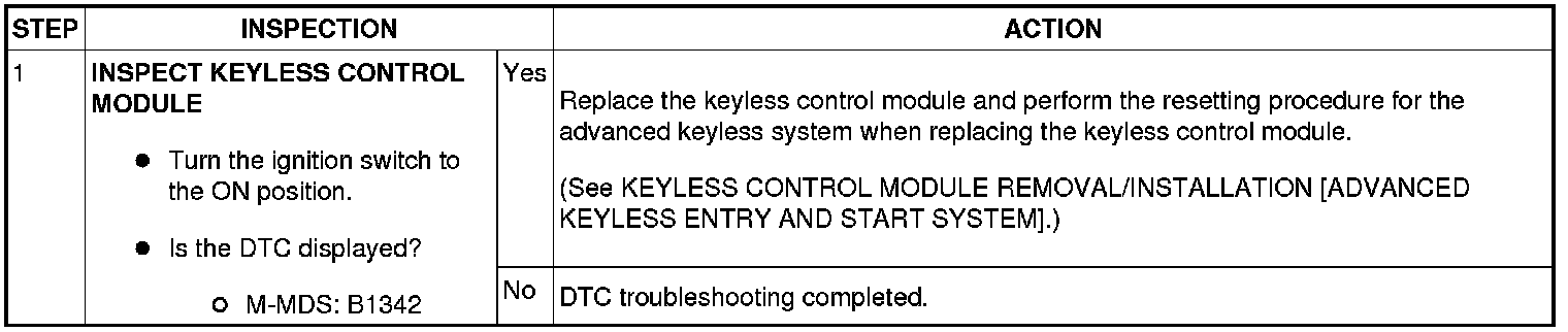 DTC B1342 [ADVANCED KEYLESS ENTRY AND START SYSTEM]