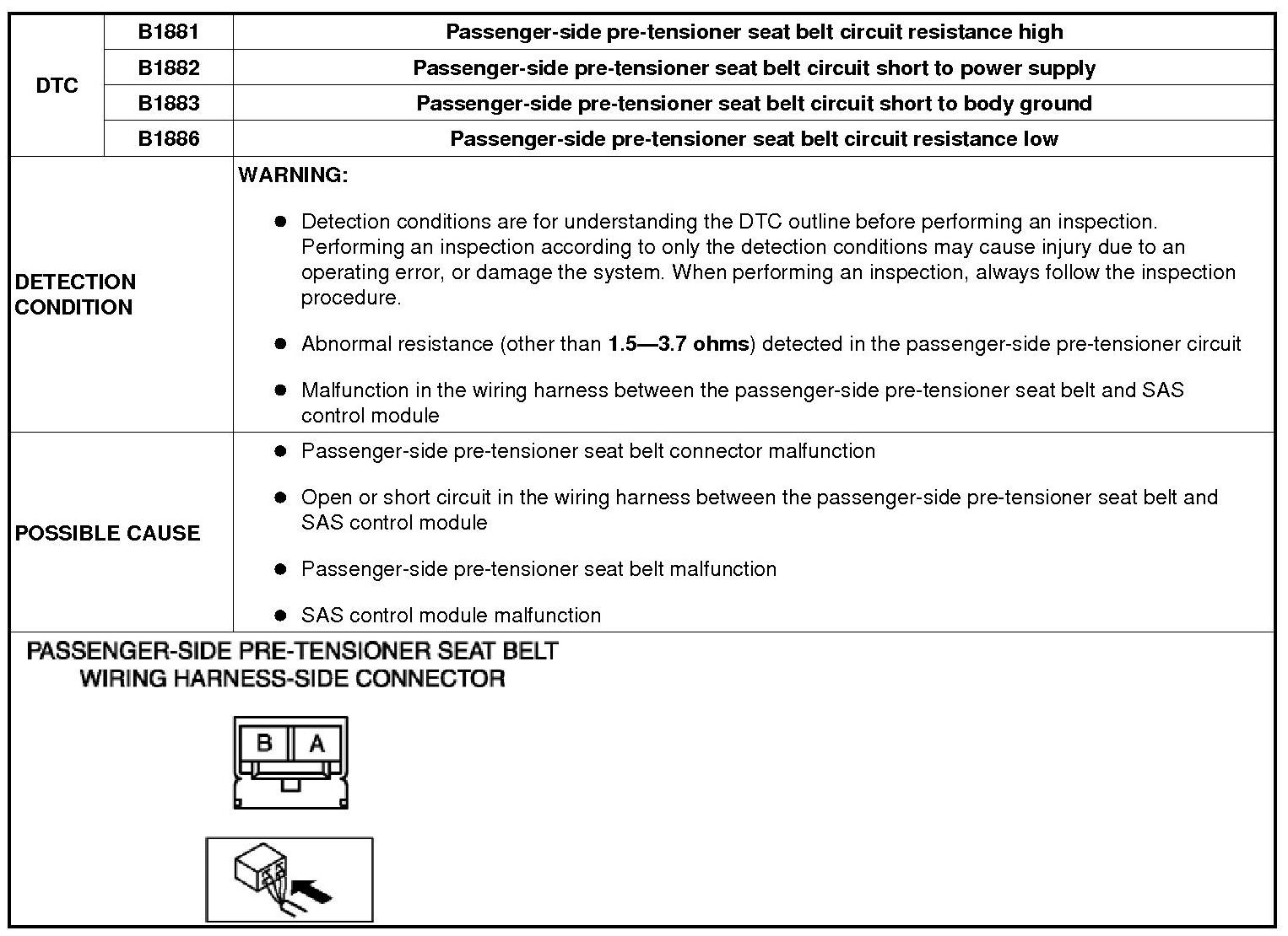 DTC B1881, B1882, B1883, B1886