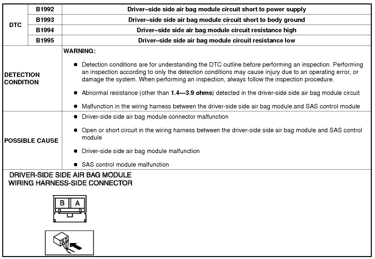 DTC B1992, B1993, B1994, B1995