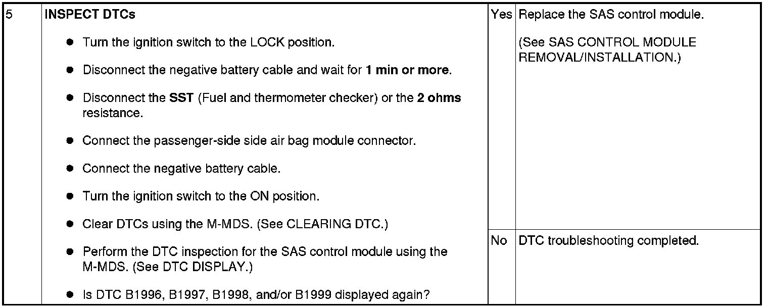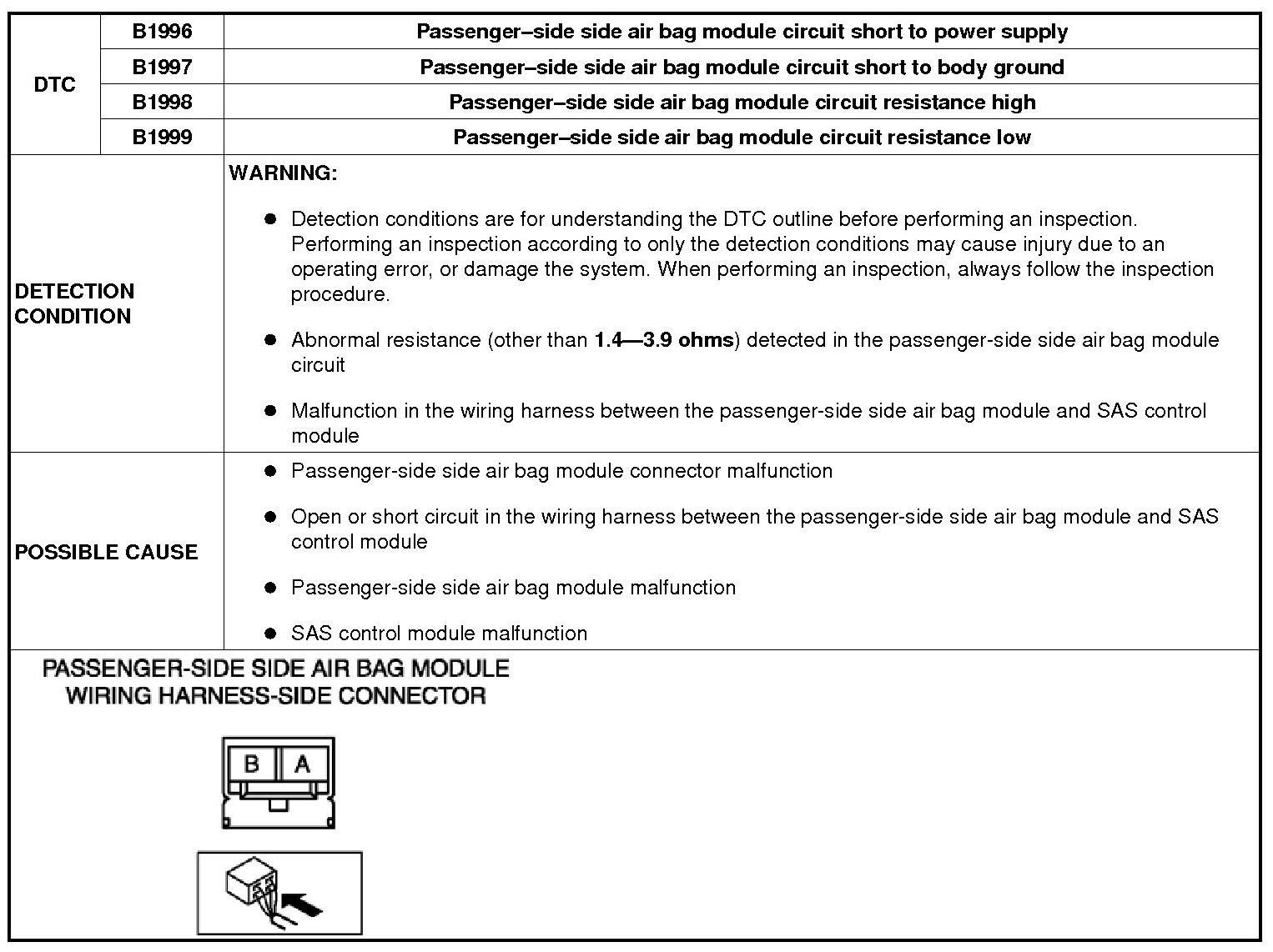 DTC B1996, B1997, B1998, B1999