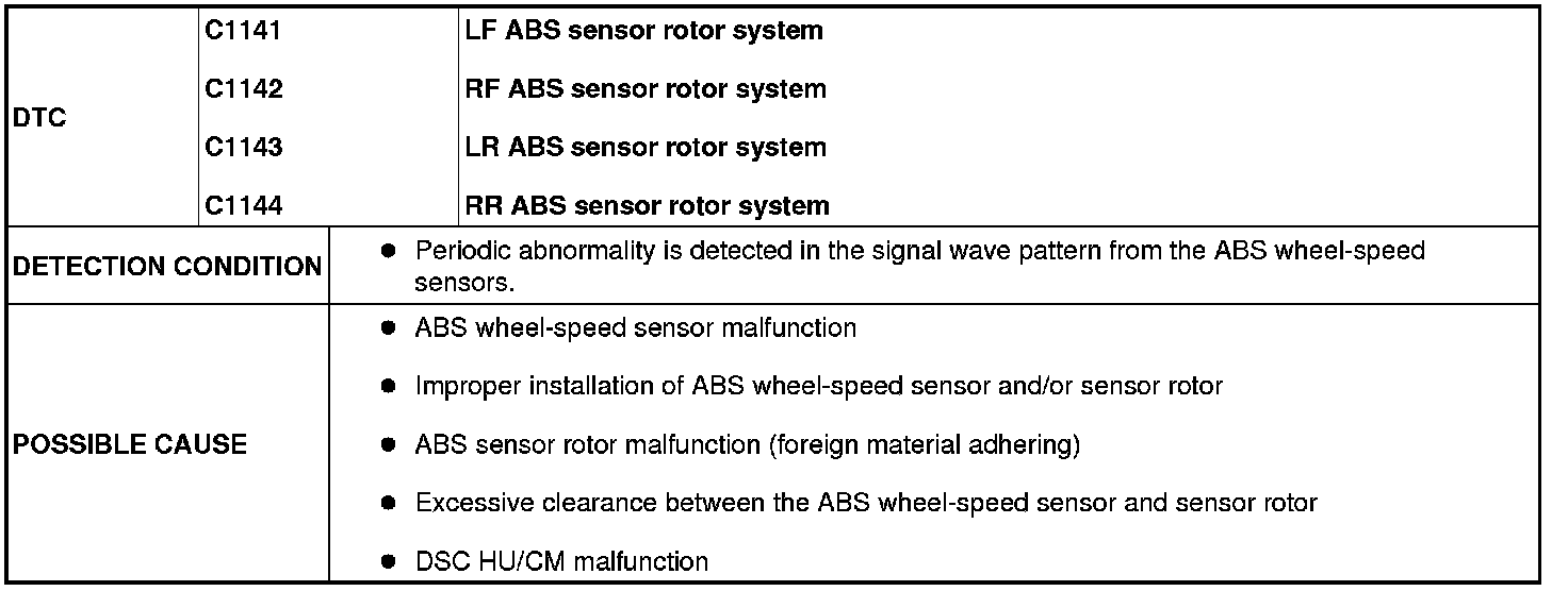 DTC C1141, C1142, C1143, C1144