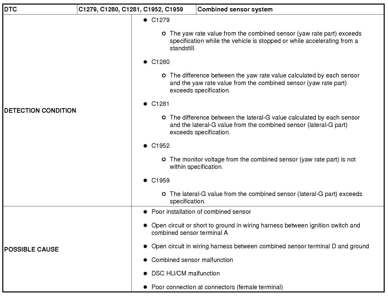 DTC C1279, C1280, C1281, C1952, C1959