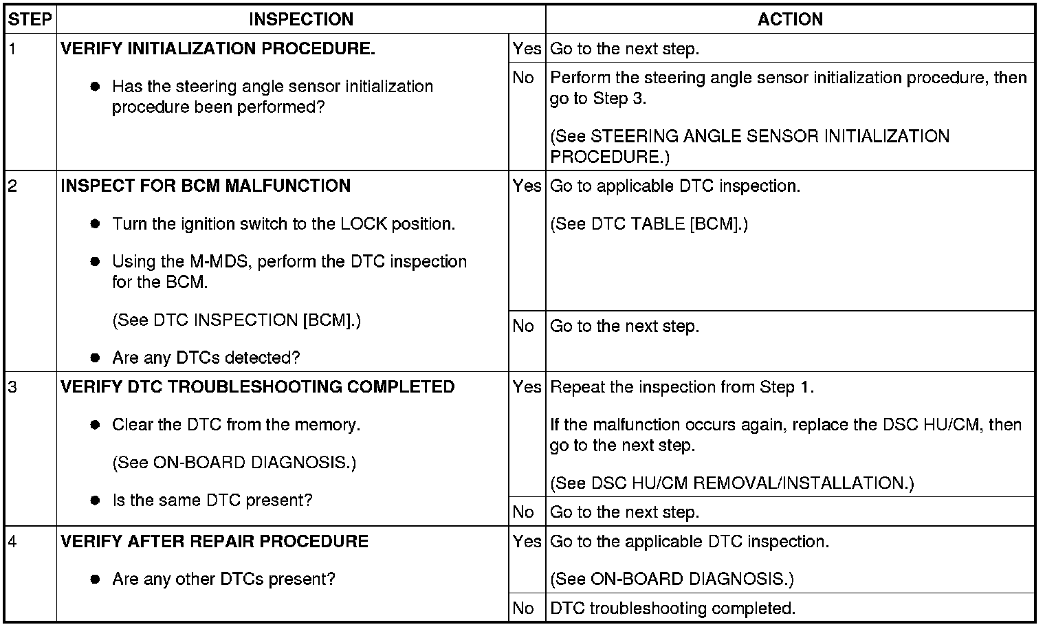 - Wiring harness disconnection between BCM connector and steering angle sensor connector
