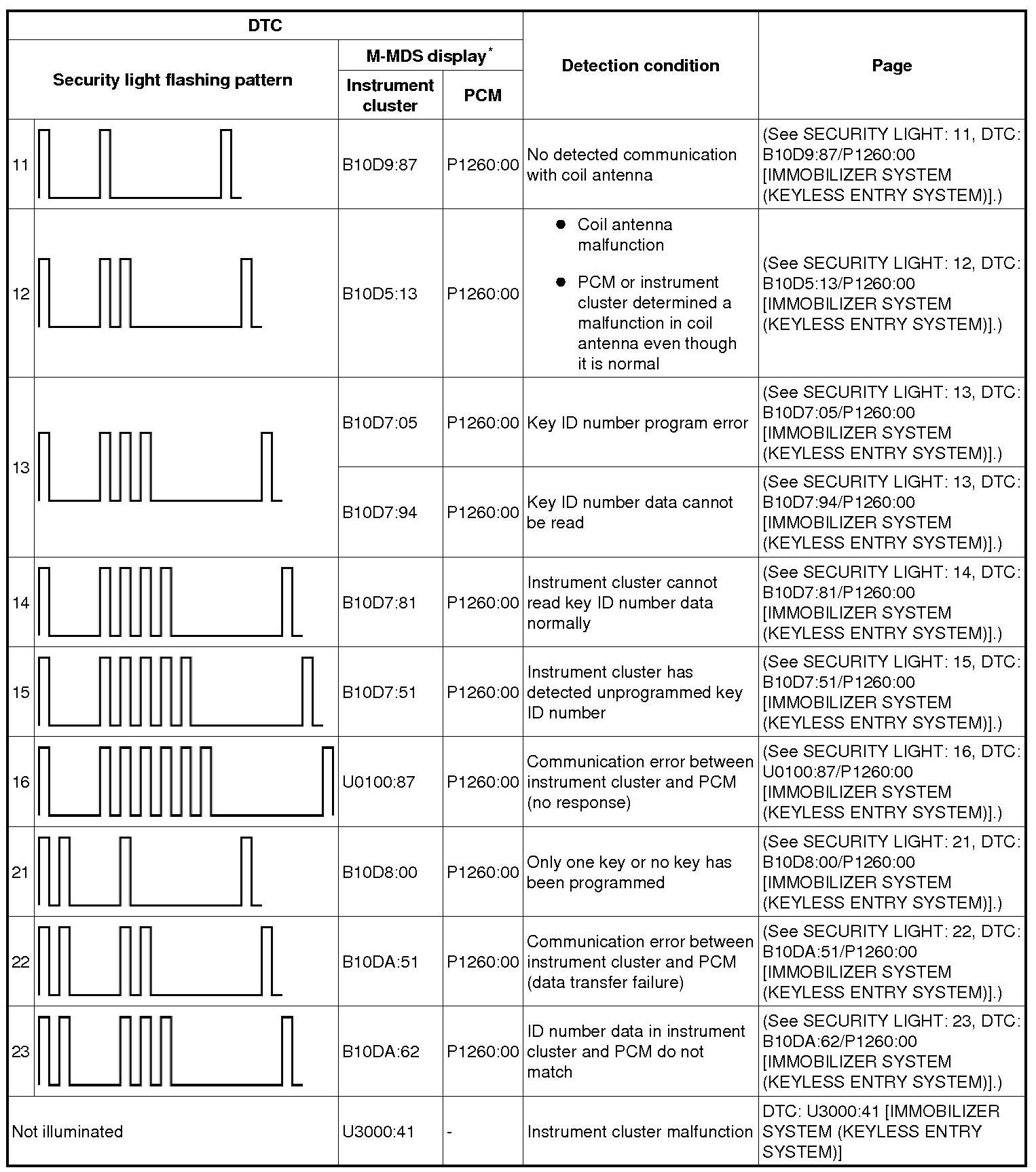 Immobilizer System (Keyless Entry System) - DTC Table