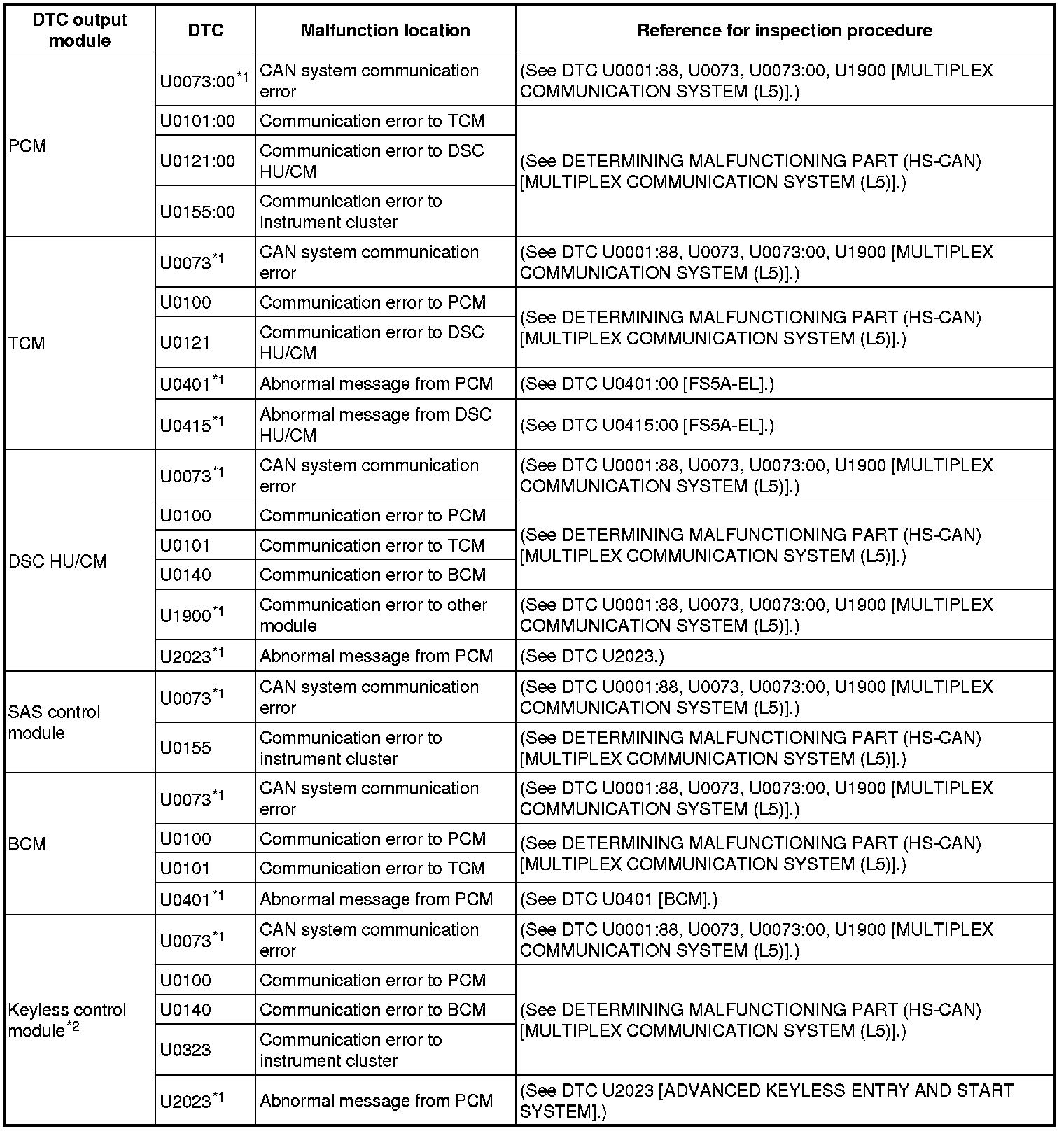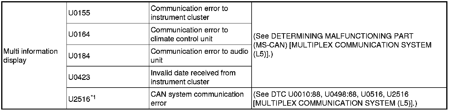Multiplex Communication System (L5) - DTC Table