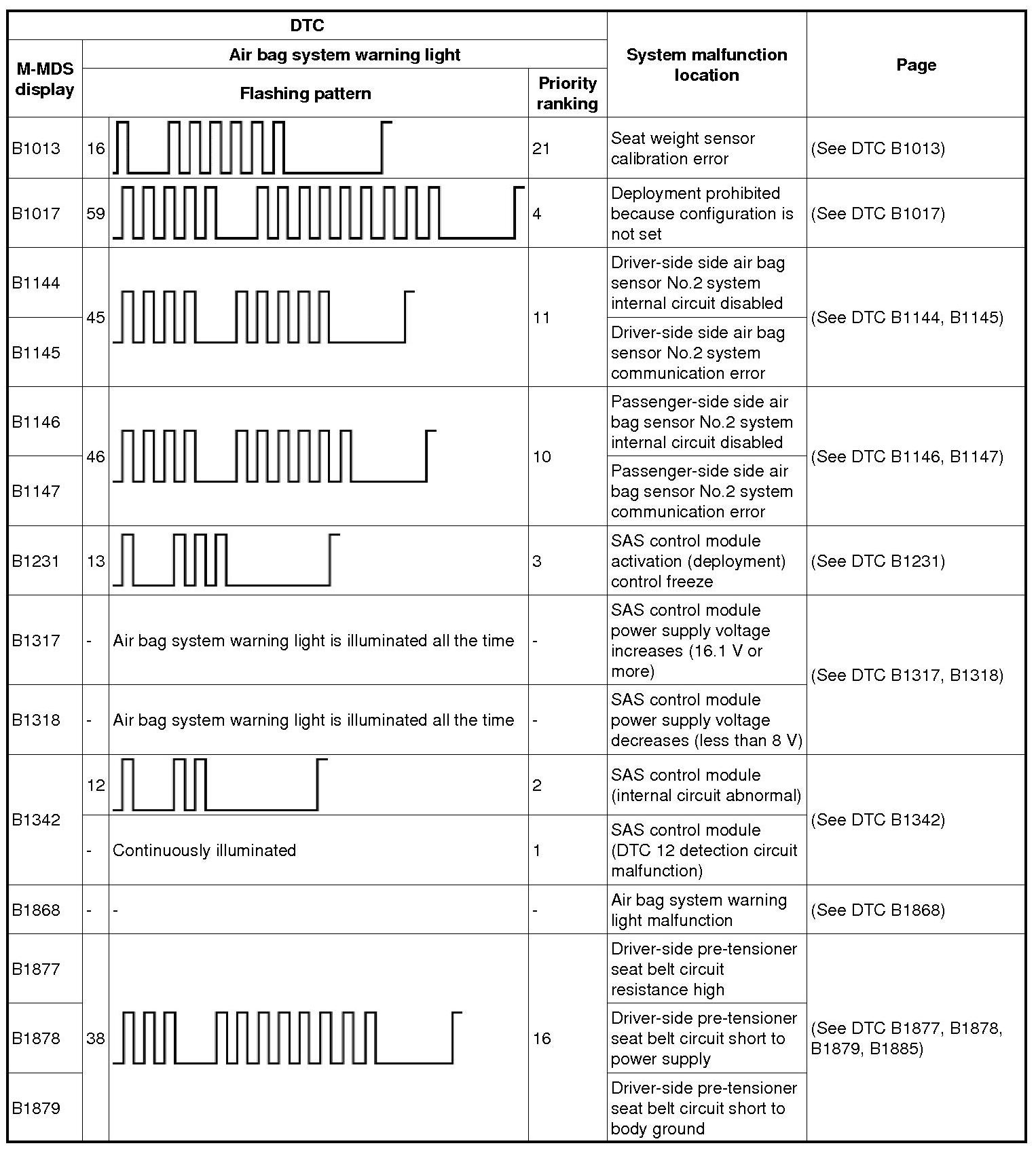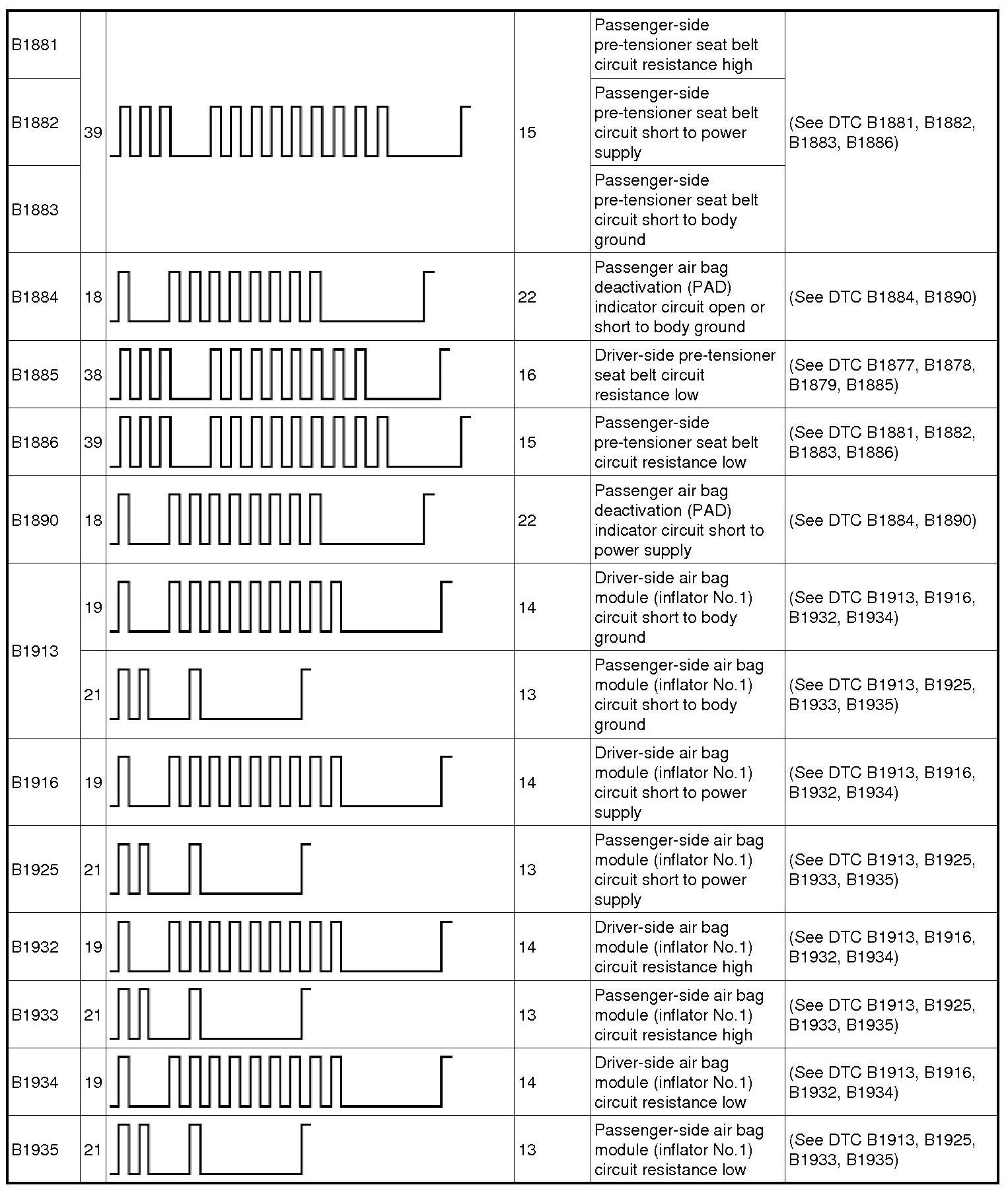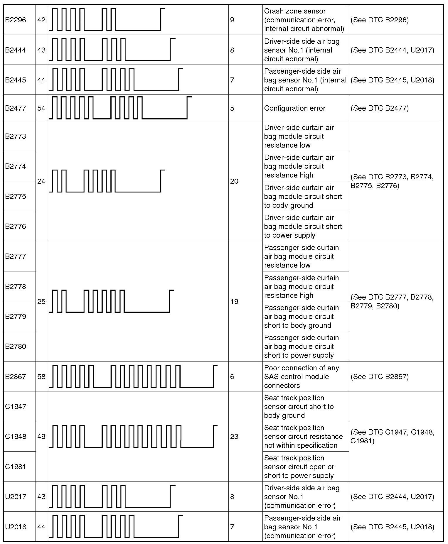 Restraint System - DTC Table