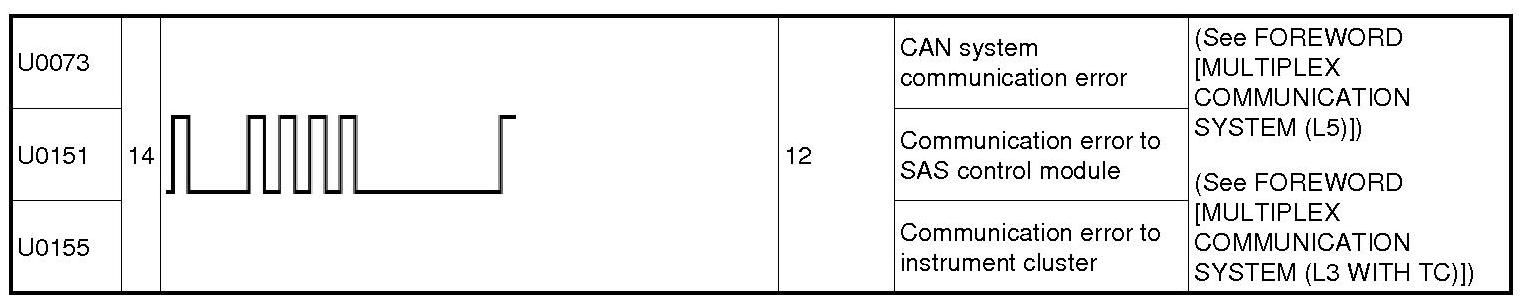 - When DTCs not shown in the DTC table are displayed, replace the SAS control module.
