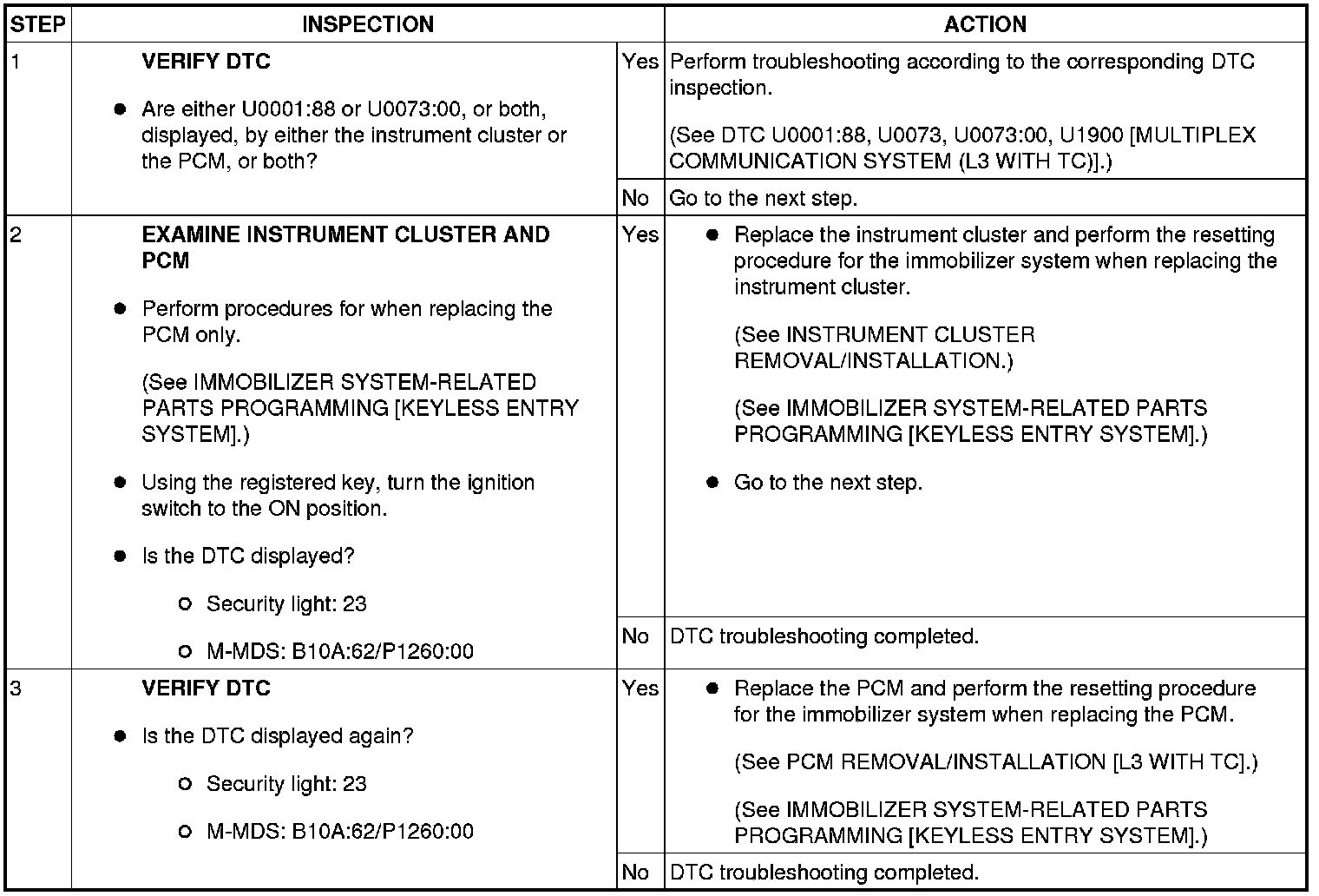 SECURITY LIGHT: 23, DTC: B10DA:62 / P1260:00 [IMMOBILIZER SYSTEM (KEYLESS ENTRY SYSTEM)]