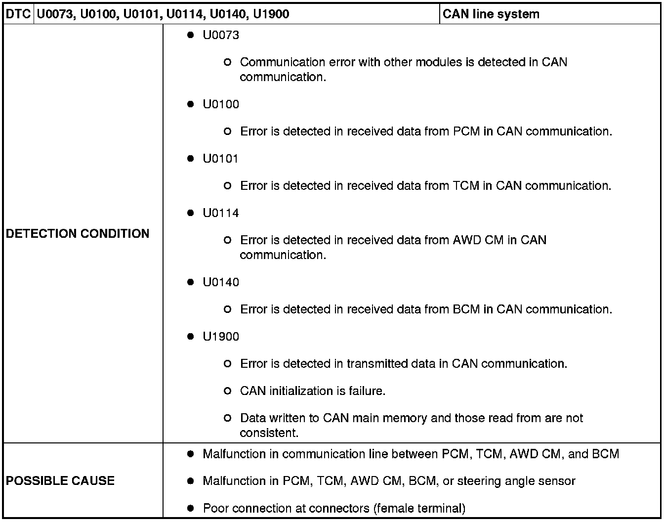 DTC U0073, U0100, U0101, U0114, U0140, U1900