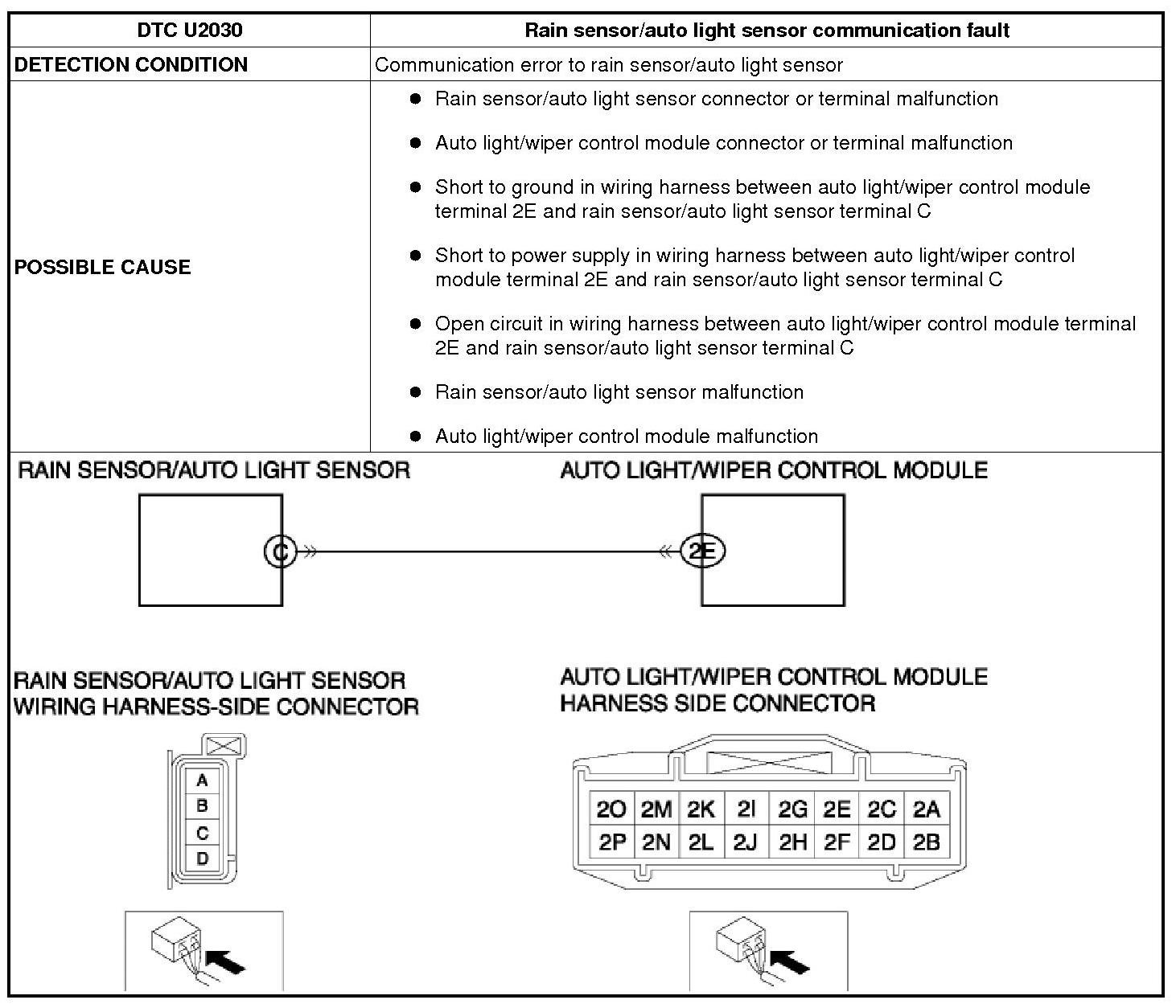 DTC U2030 [AUTO LIGHT / WIPER CONTROL MODULE]