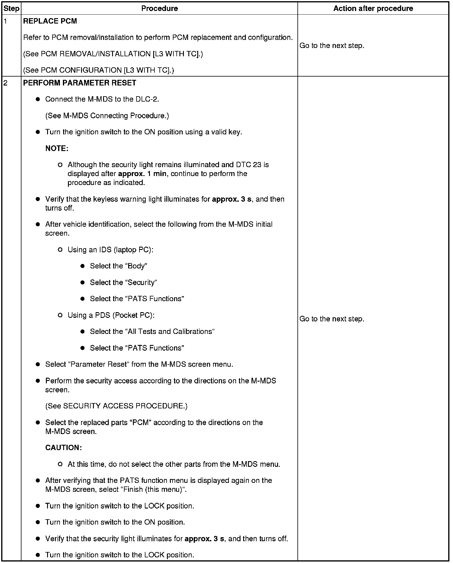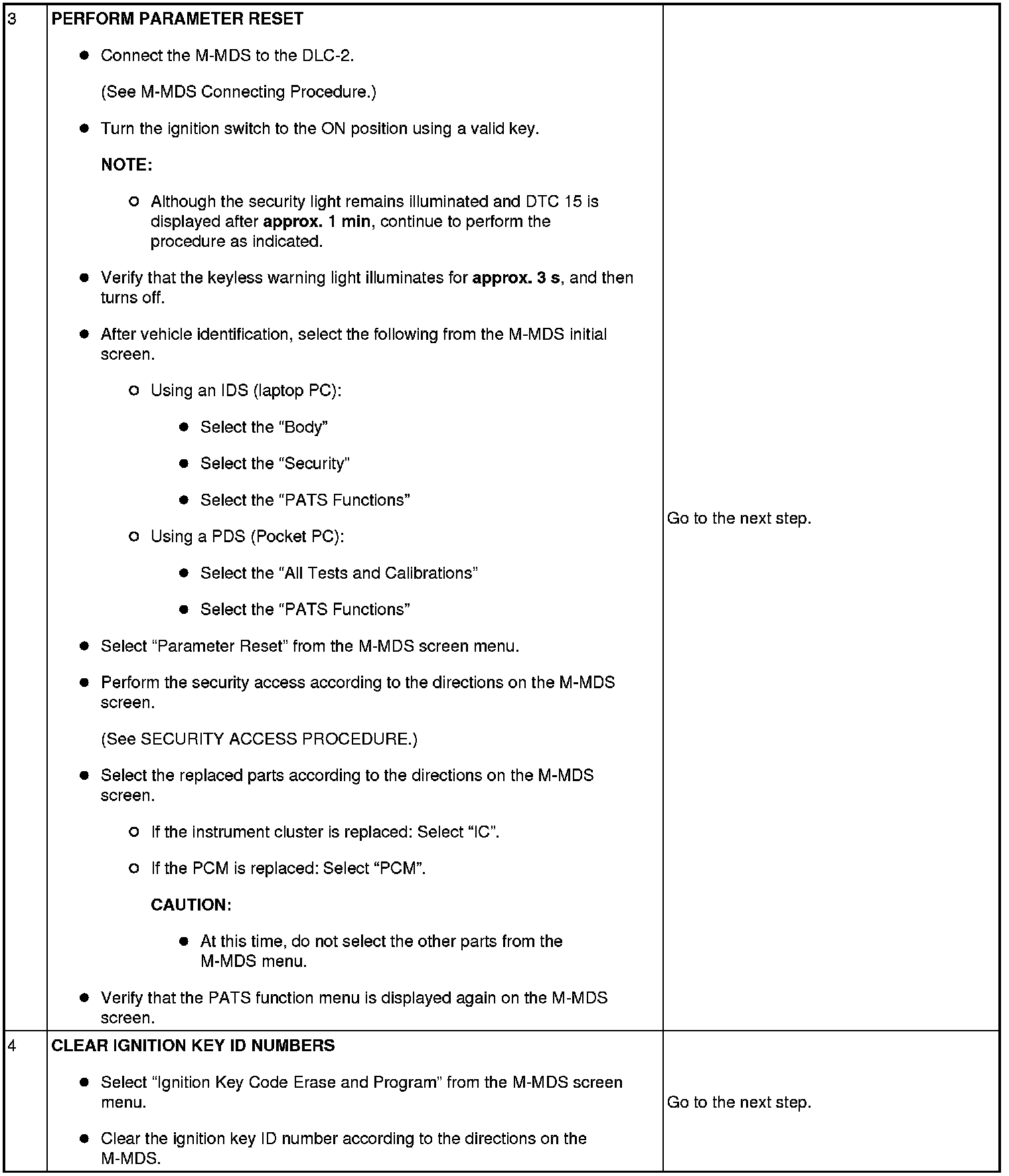 No.6 Programming Procedure Due to Simultaneous Replacement of Immobilizer System-related Parts (PCM and Instrument Cluster)