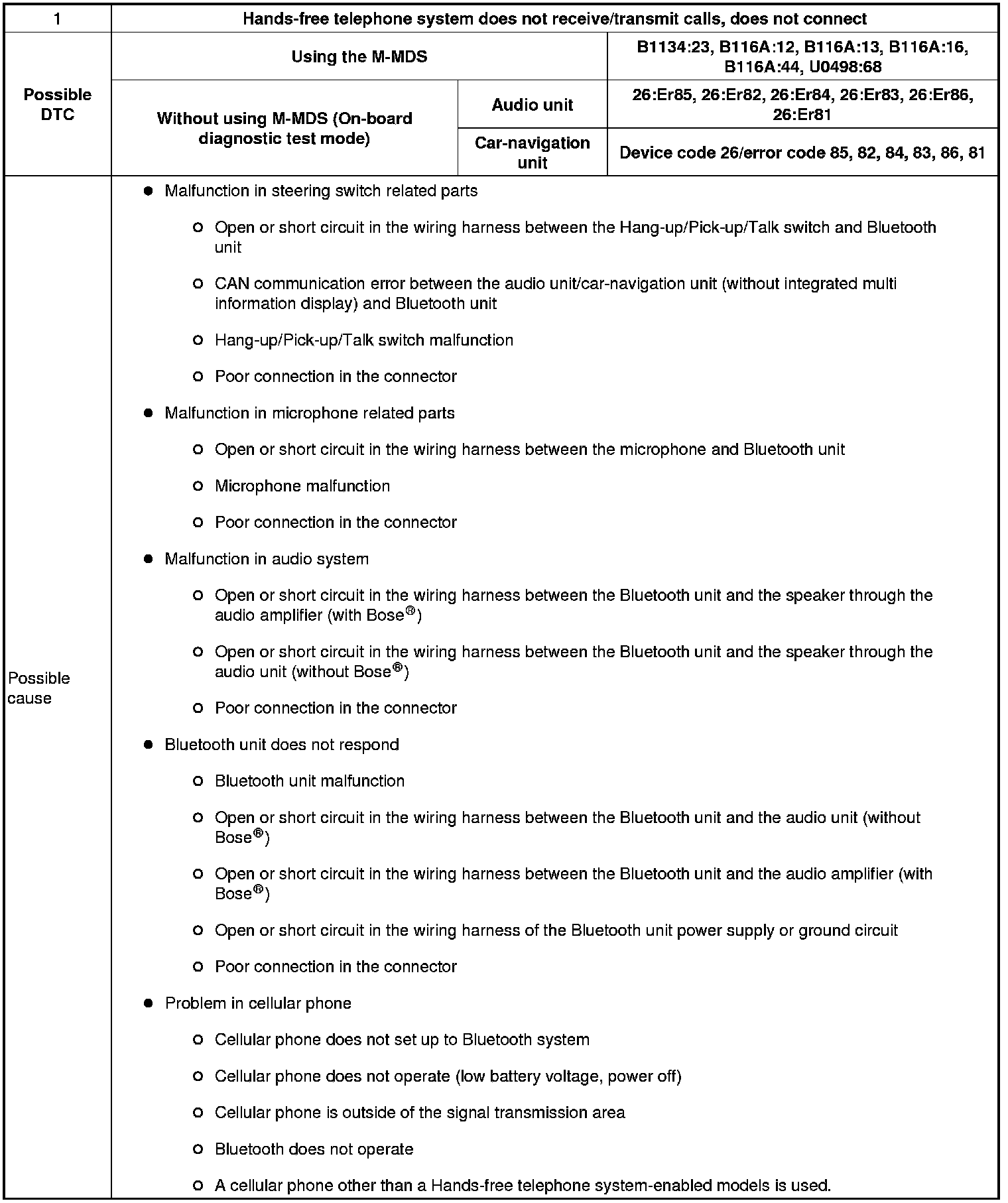 No.1 HANDS-FREE TELEPHONE SYSTEM DOES NOT RECEIVE/TRANSMIT CALLS, DOES NOT CONNECT [Bluetooth SYSTEM (HANDS-FREE TELEPHONE (HF/TEL) SYSTEM)]