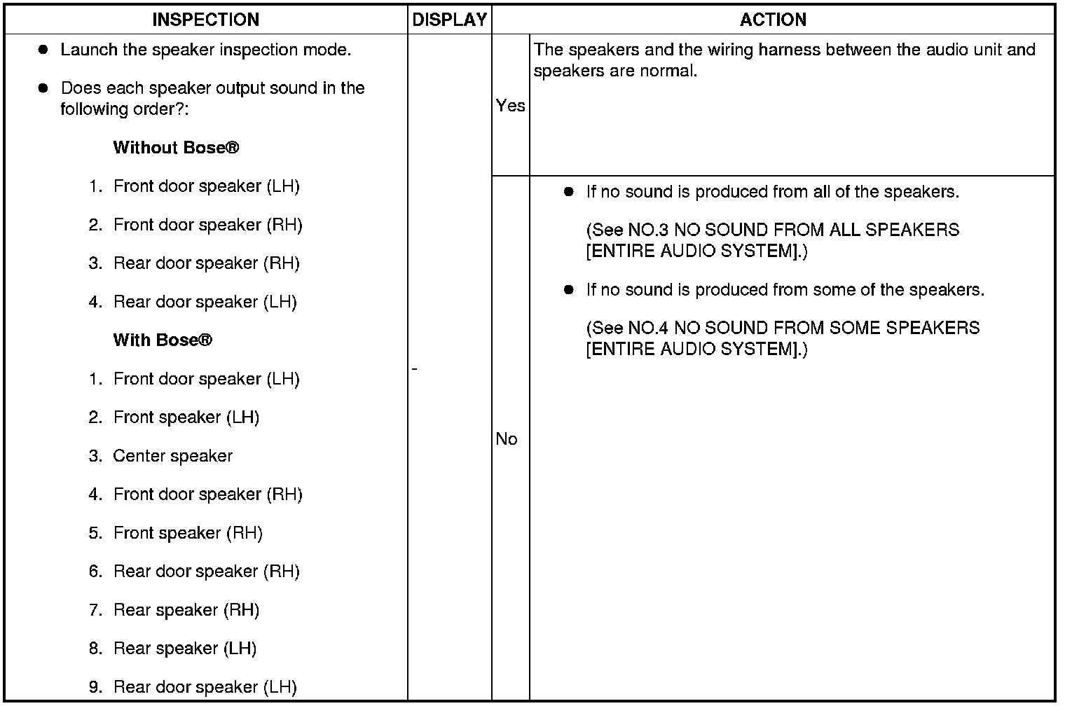 4. Inspect according to the following table: