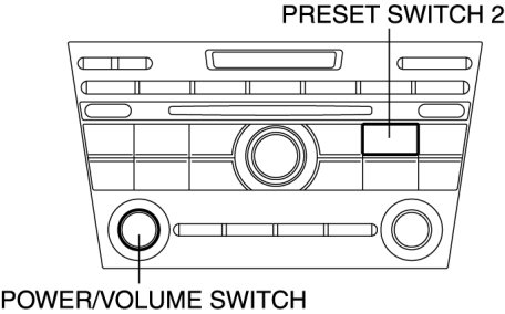 4. While pressing the POWER/VOLUME switch, simultaneously press the PRESET switch 2 for 0.2 s or more.