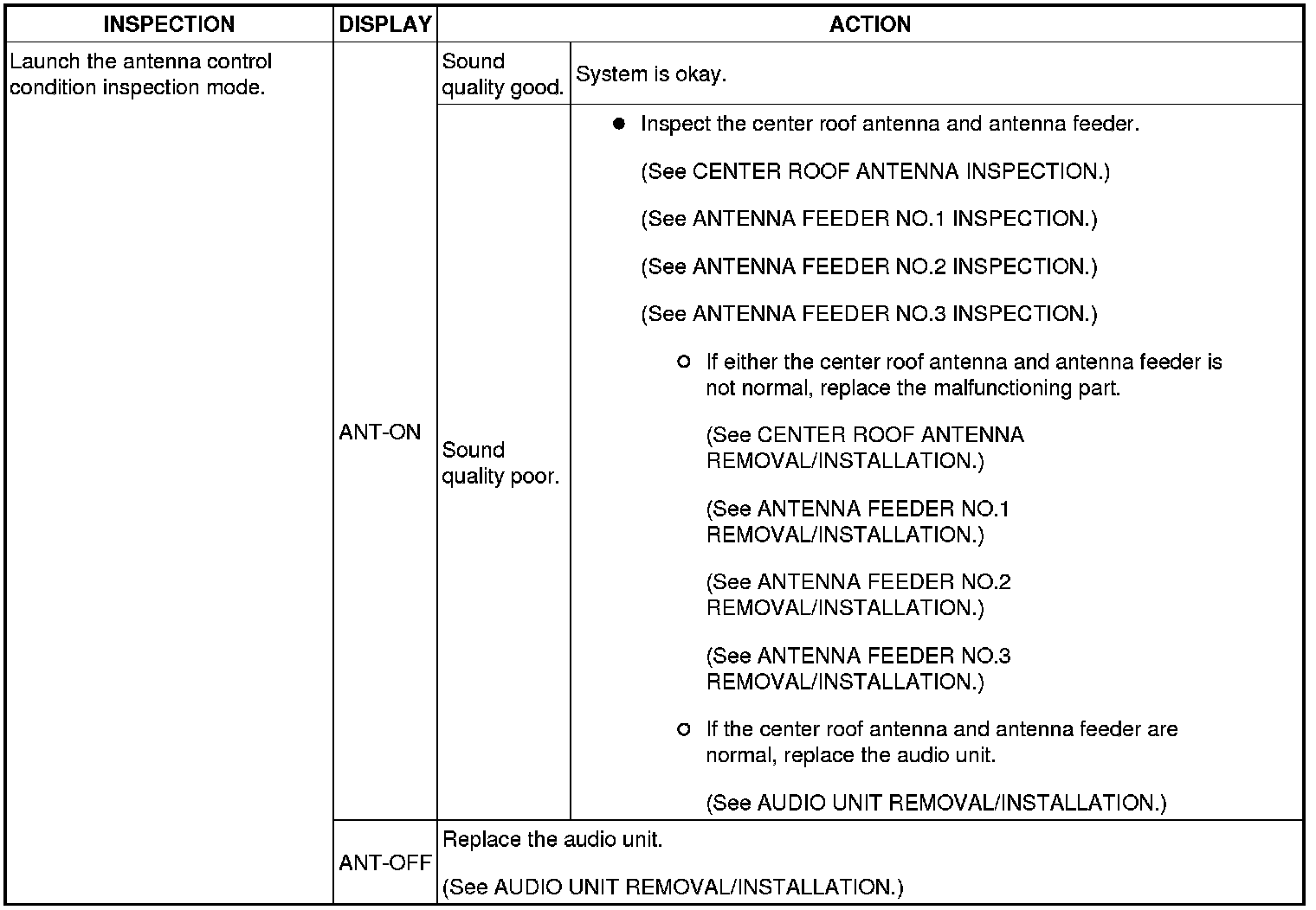 5. Cancel the diagnostic assist function by either turning off the audio unit power or by turning the ignition switch to the LOCK position.