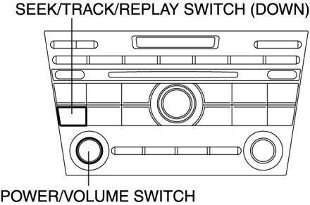 3. While pressing the POWER/VOLUME switch, simultaneously press the SEEK/TRACK/REPLAY switch (down) for 3 s or more.