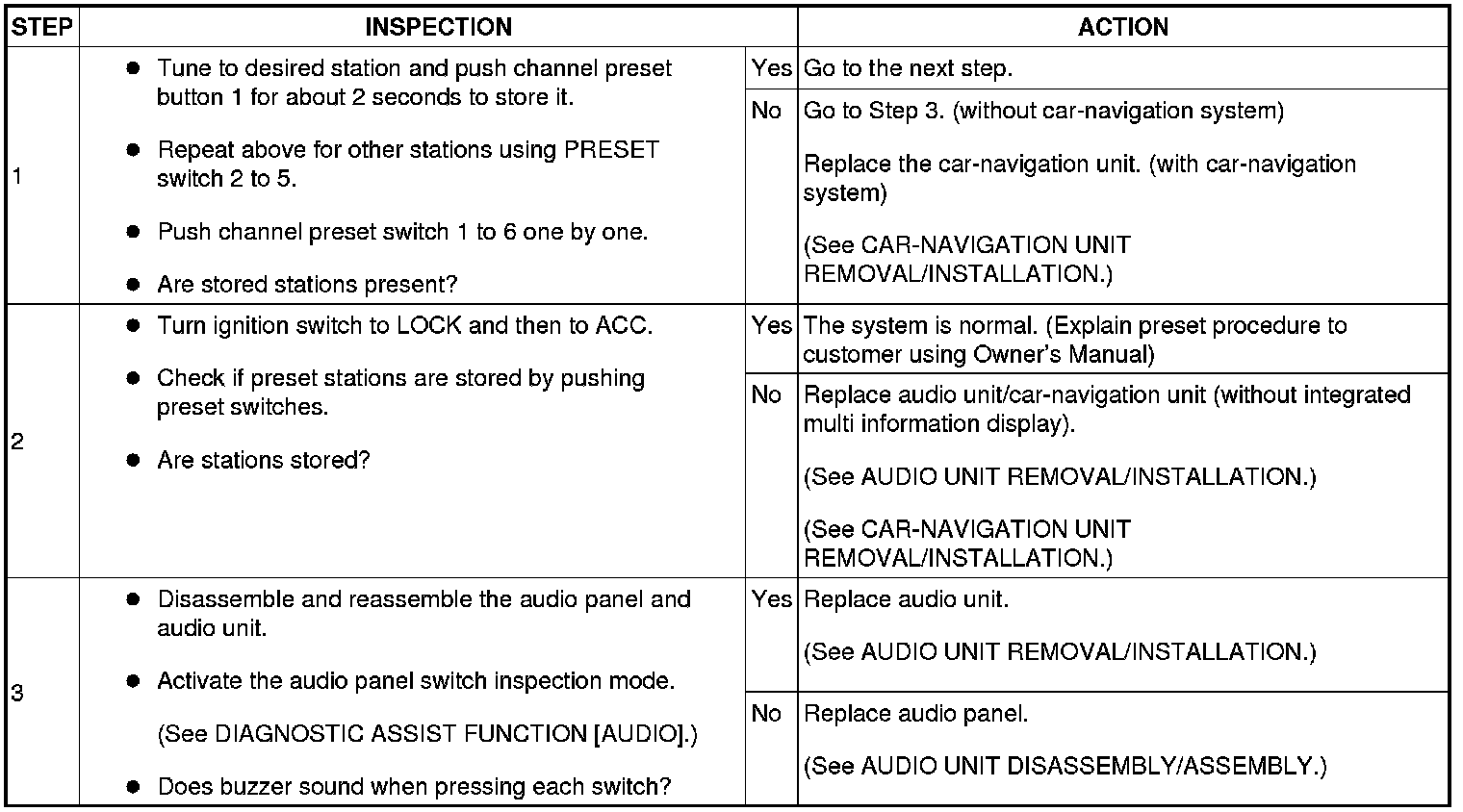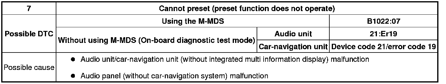 NO.7 CANNOT PRESET (PRESET FUNCTION DOES NOT OPERATE) [RADIO]