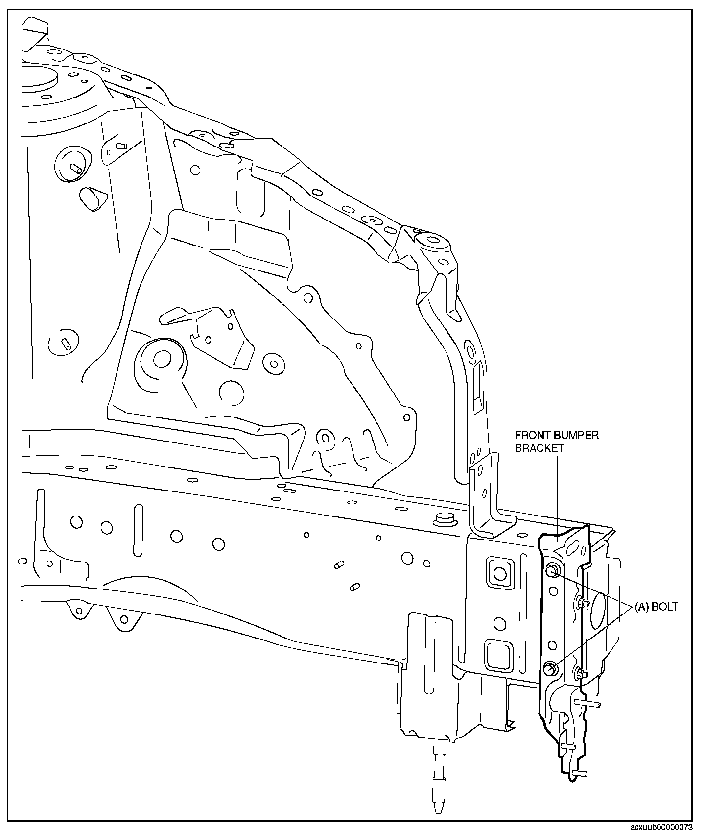 2. Tighten the bolts at section (A) to the specified torque and install the front bumper bracket.