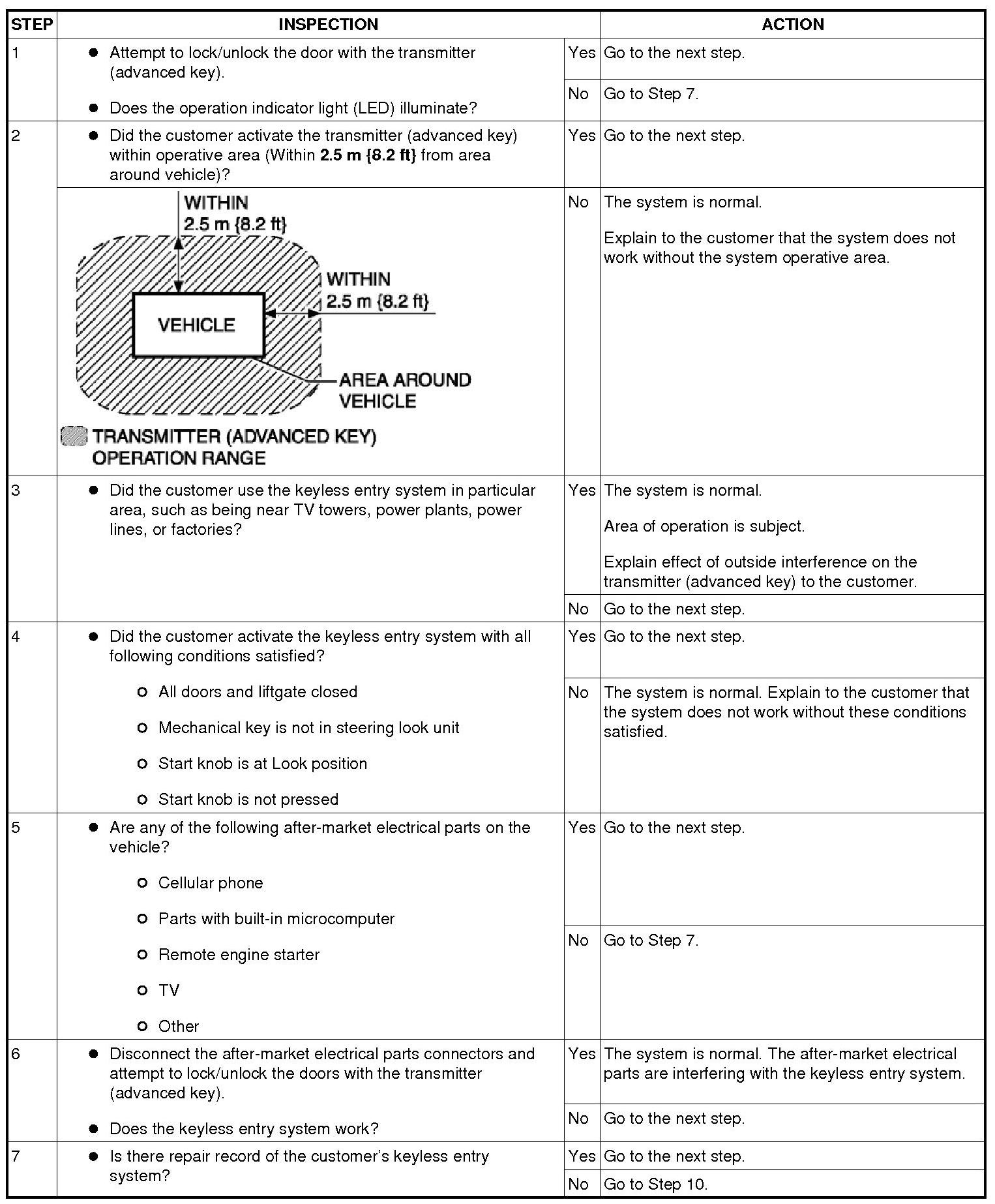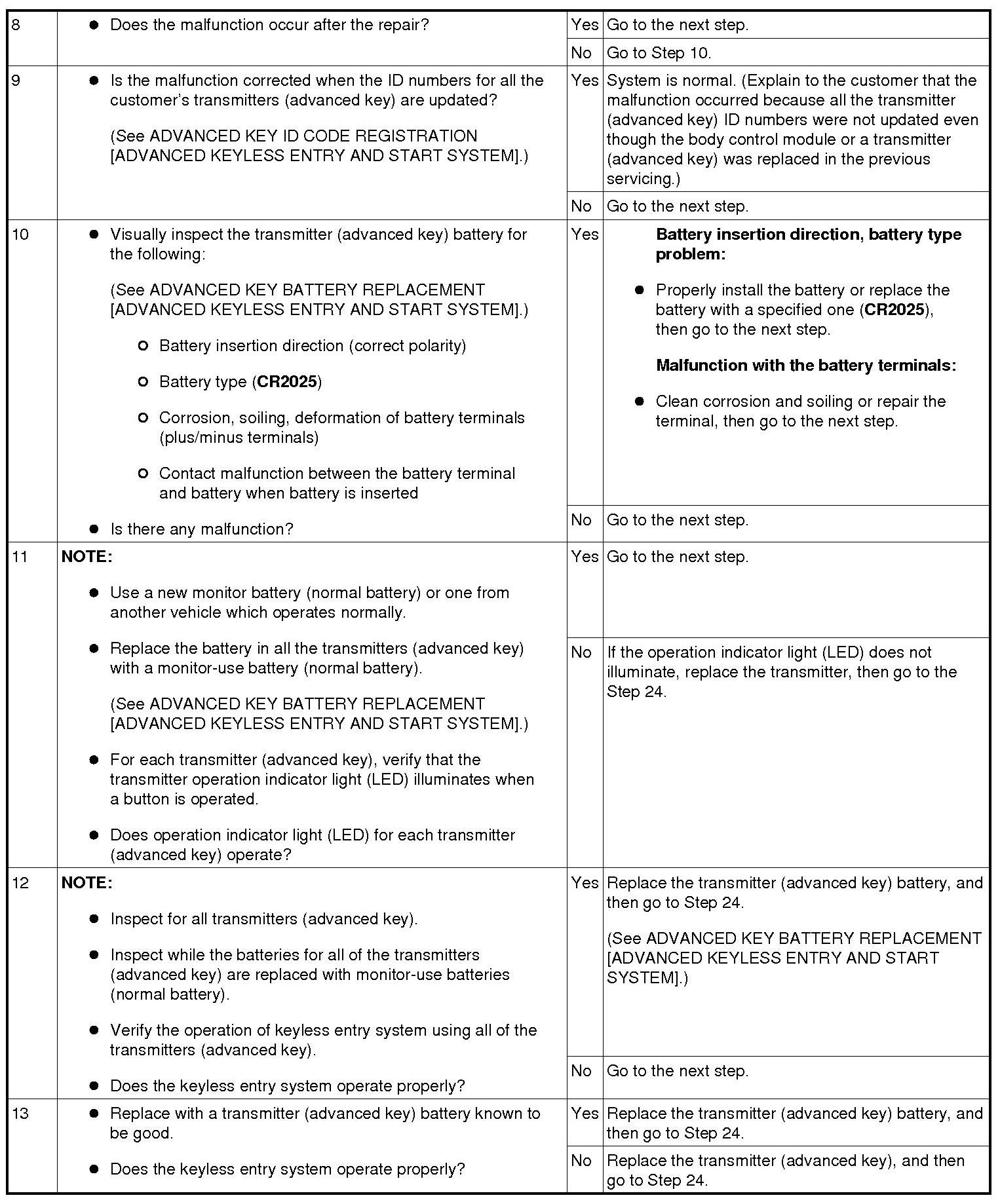 No. 1 Door Cannot Be Locked/Unlocked By Transmitter (Advanced Key)