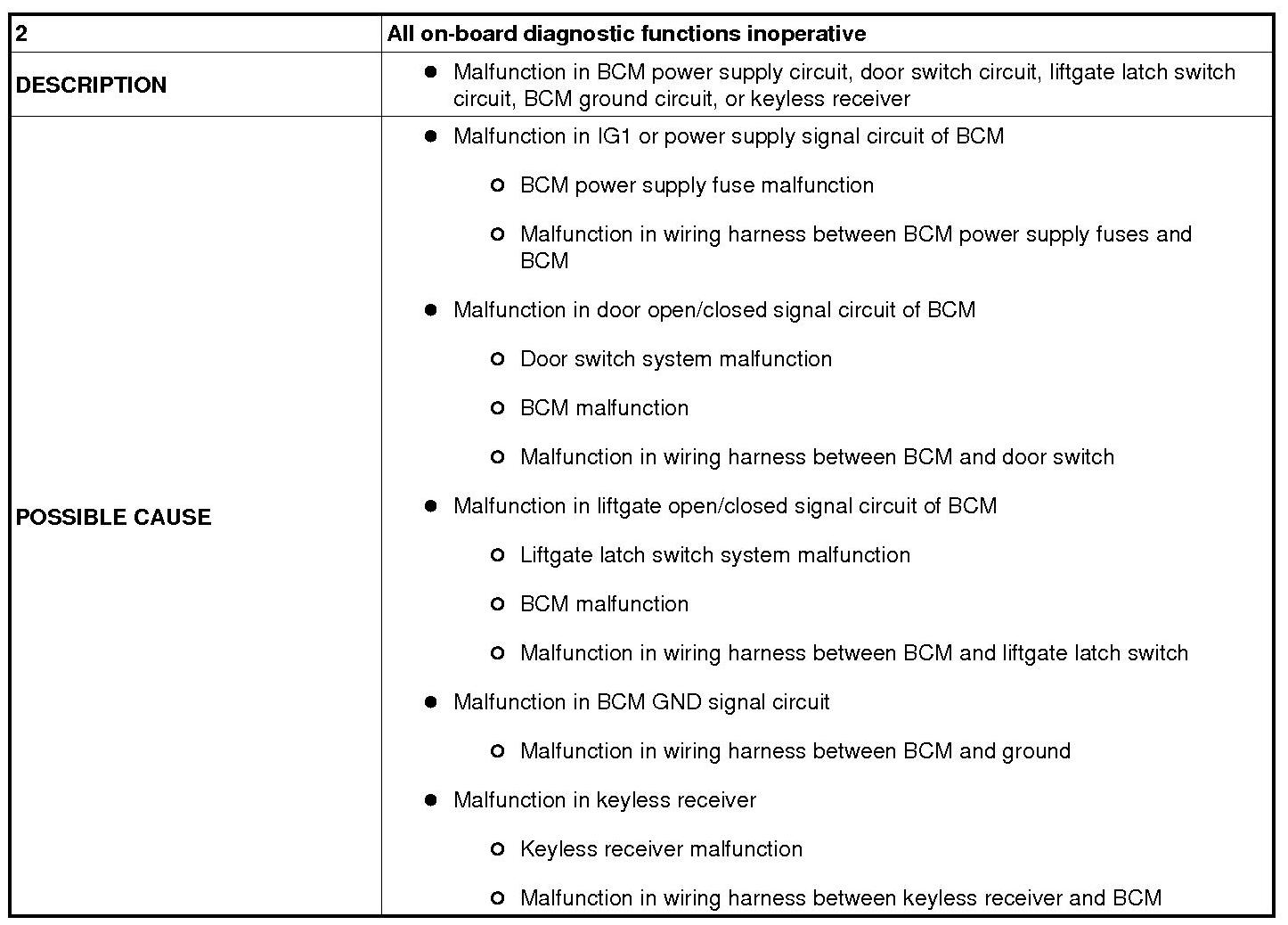 NO.2 ALL ON-BOARD DIAGNOSTIC FUNCTIONS INOPERATIVE [KEYLESS ENTRY SYSTEM]