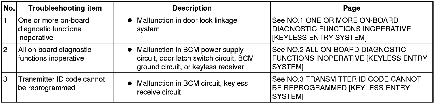 SYMPTOM TROUBLESHOOTING CHART [KEYLESS ENTRY SYSTEM]