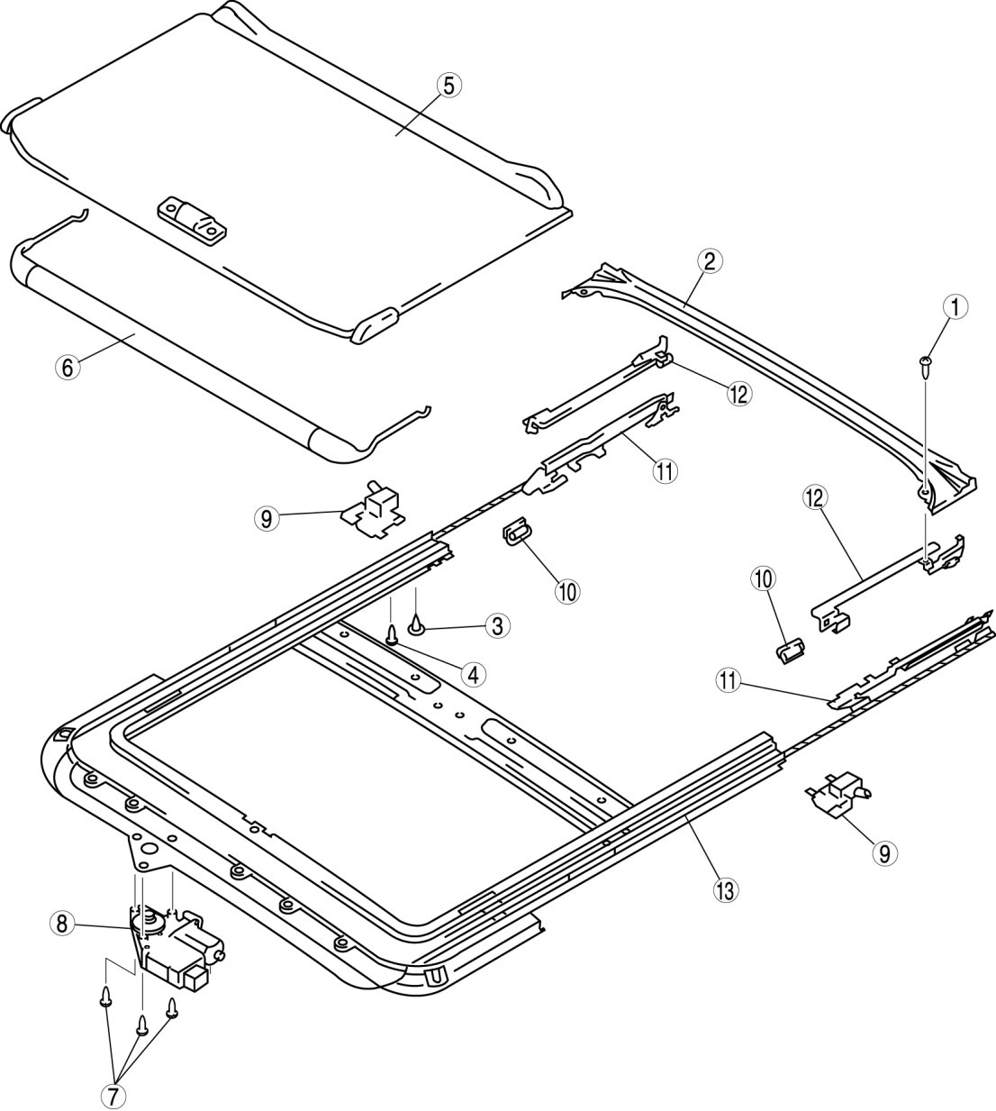 - If the guide or sunroof motor is removed, the sunroof motor initial position setting has to be performed. After installing the sunroof unit, perform the initial position setting using the following procedure.