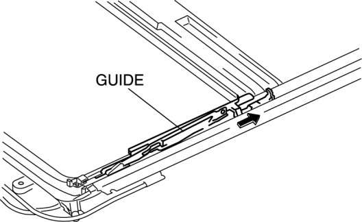 2. Slide the guide to the rear of the sunroof frame, and remove the guide and decoration link as a single unit.