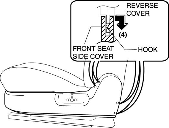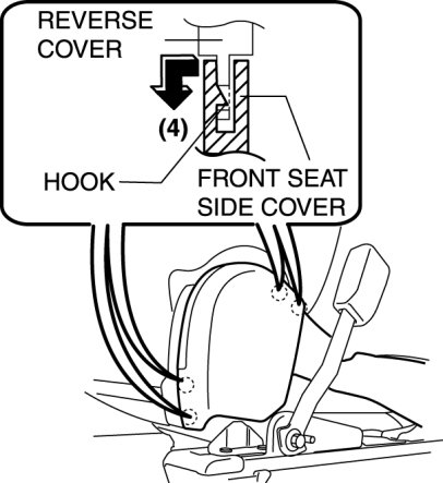 5. Pull the front seat side cover in the order of (4) shown in the figure to disengage the hooks.