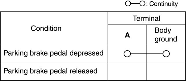 - If not as indicated in the table, replace the parking brake switch.