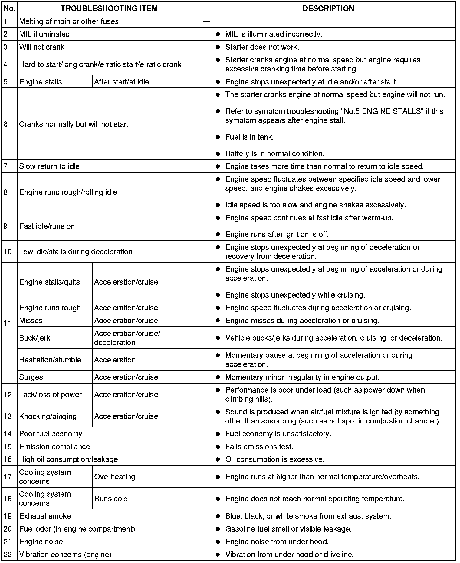 Confirm trouble symptom using the following diagnostic index, then go to appropriate troubleshooting chart.