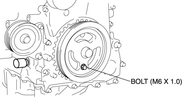 7. Remove the bolt (M6 X 1.0) installed to the crankshaft pulley.