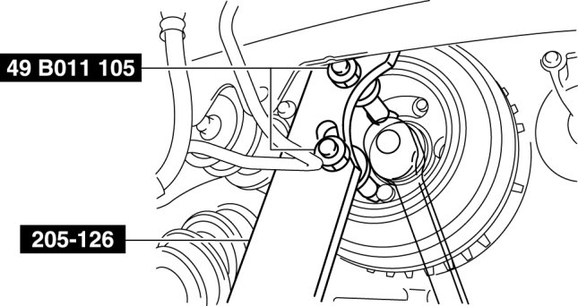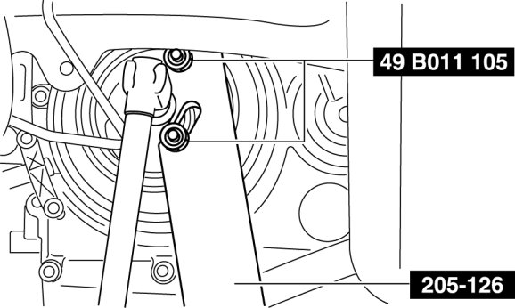 - If the spacer is not installed, the crankshaft pulley cannot be secured because the length for the SST (49 B011 105) is not sufficient.