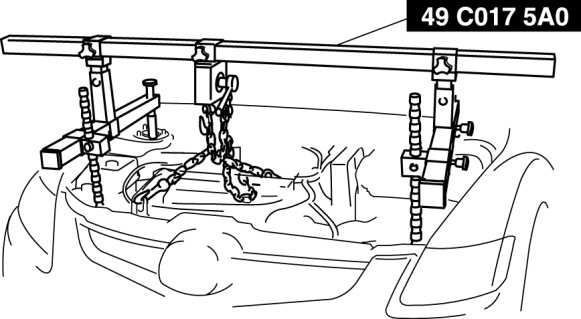 a. As shown in the figure, set the rear shafts of the SST to the left and right shock absorber bolts.