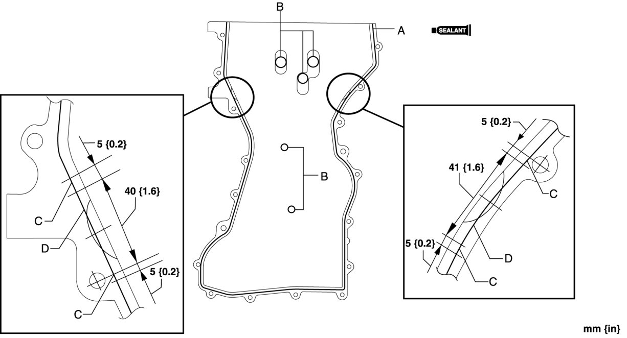 - Install the engine front cover before the applied silicone sealant starts to harden.