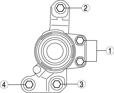 3. Tighten the No.3 engine mount installation bolts and nuts in the order shown in the figure.